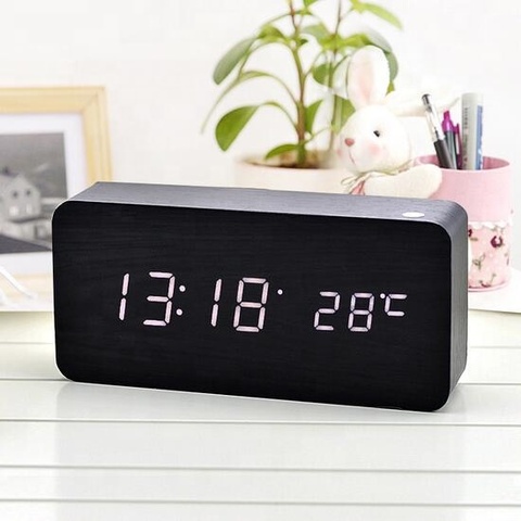 Nueva llegada de escritorio rectangular de la temperatura en tiempo doble pantalla reloj de madera/rectangular electrónica reloj de alarma